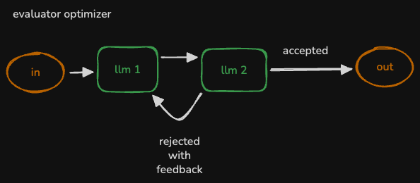 - “evaluator optimizer” - we have an llm evaluate the output of another llm. it then accepts or rejects the output, with for e.g. suggestions if needed