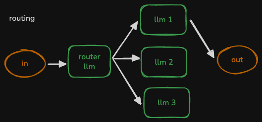 - “routing” - we have multiple specialized llms for a task (separation of concerns). there is another llm before them, that routes the input to the appropriate llm